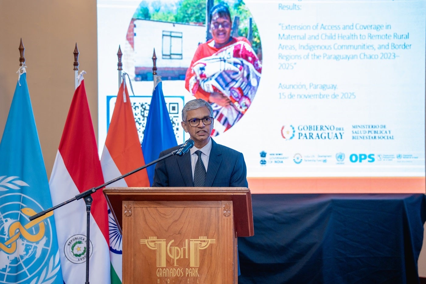 Asunción, Paraguay, 18 de noviembre de 2025 — Con la presencia de la Ministra de Salud Pública y Bienestar Social, Dra. María Teresa Barán, y autoridades del Gobierno de la India, se realizó un emotivo acto de cierre y presentación de resultados del proyecto “Extensión del acceso y la cobertura en salud materno-infantil a zonas rurales remotas, comunidades indígenas y regiones fronterizas del Chaco paraguayo 2023–2025”. El evento celebró no solo los logros técnicos, sino también el valor de la cooperación Sur-Sur para fortalecer sistemas de salud resilientes y avanzar hacia la equidad, sin dejar a nadie atrás.