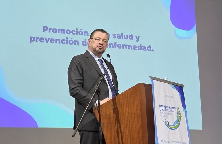 El Presidente de la República destacó que se debe “hacer lo menos complejo, pero lo más efectivo para el pueblo costarricense que es llevar la línea de defensa contra las enfermedades hacia la línea a favor de la salud en el sistema básico primario”.