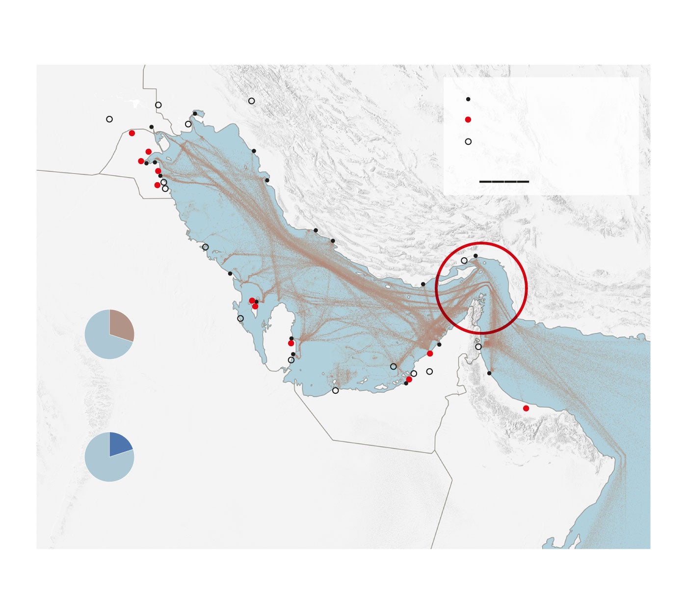Densidad del tráfico marítimo en la zona del golfo Pérsico